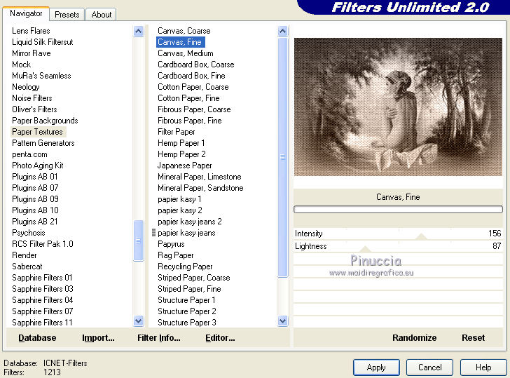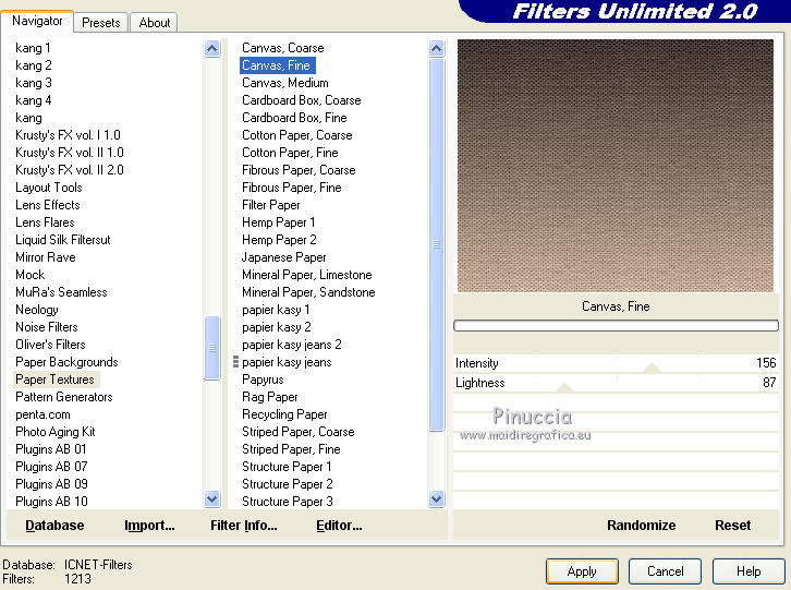 23. Effets>Modules Externes>Filters Unlimited 2.0 - Paper Textures - Canvas Fine.