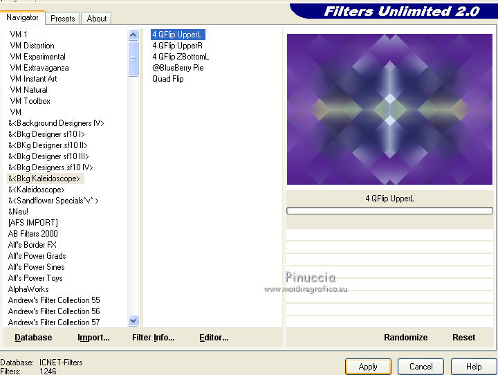 6. Effets>Modules Externes>Filters Unlimited 2.0 - &<Bkg Kaleidoscope> - 4QFlip UpperL