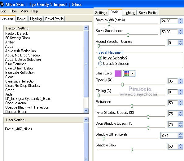 9. Effets>Modules Externes>Alien Skin Eye Candy 5 Impact - Glass.