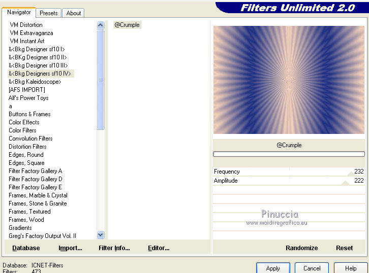 5. Effects>Plugins>Filters Unlimited 2.0 - &<Bkg Designer sf10IV> - Crumple.