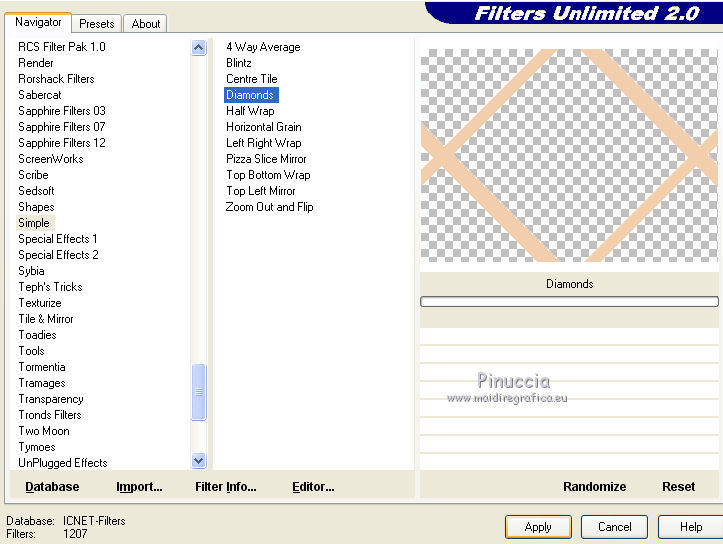 18. Effects>Plugins>Filters Unlimited 2.0 - Simple - Diamonds.