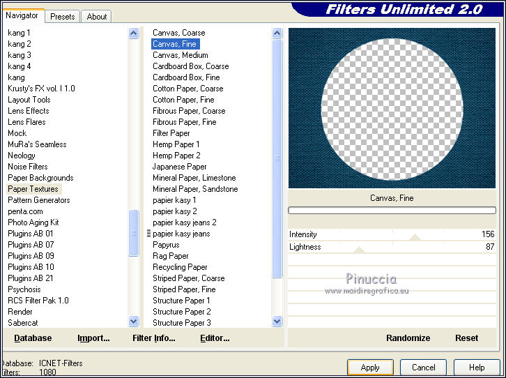 8. Effects>Plugins>Filters Unlimited 2.0 - Paper Textures - Canvas Fine.