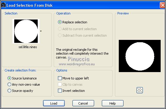 7. Selections>Load/Save Selection>Load Selection from Disk.