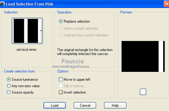 18. Selections>Load/Save Selection>Load Selection from Disk.