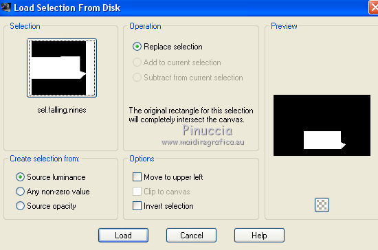 13. Selections>Load/Save Selection>Load Selection from Disk.