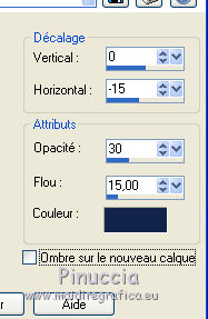 Répéter Ombre portée, vertical et horizontal 0/-15.