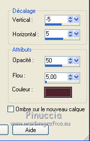 Effets>Effets 3D>Ombre portée, couleur #52232d.