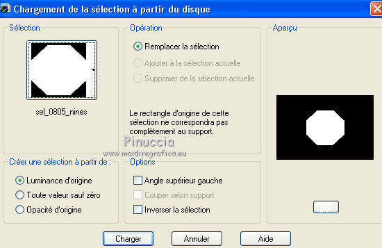 3. Sélections>Charger/Enregistrer une sélection>Charger à partir du disque.