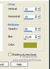 19. Effects>3D Effects>Drop Shadow, color #9b9e2c.