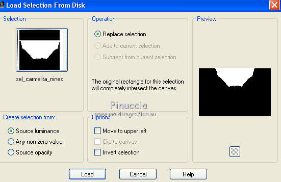 19. Selections>Load/Save Selection>Load Selection from Disk.