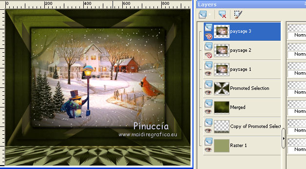 le calque paysage 1 est ouvert; les calques paysage 2/3 sont fermés