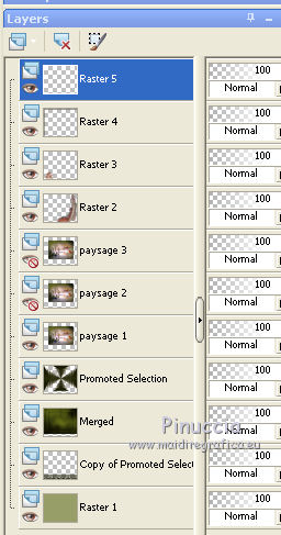 the layer paysage 1 is open; the layers paysage 2/3 are closed.