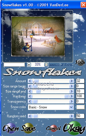 Effects>Plugins>VDL Adrenaline - Snowflakes, Random Seed to 95 and ok.