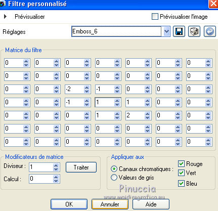 14. Effets>Filtre personnalisé - sélectionner le preset Emboss 6 et ok.