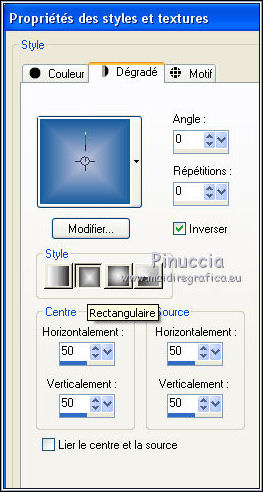 7. Préparer en avant plan un dégradé de premier plan/arrière plan, style Rectangulaire.