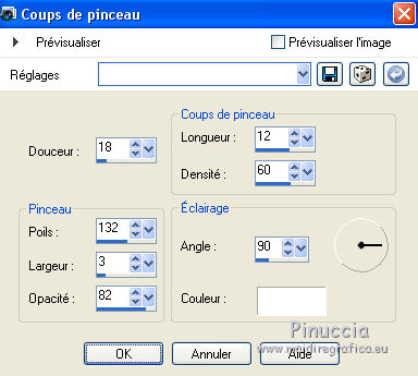 6. Effets>Effets de traits>Coups de pinceau, couleur blanche.