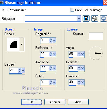 11. Effets>Effets 3D>Biseautage intérieur.
