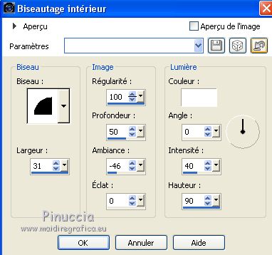29. Effets>Effets 3D>Biseautage intérieur, couleur #ffffff.