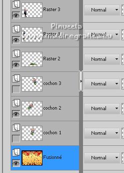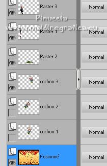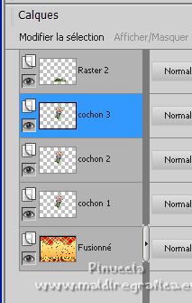22. Calques>Dupliquer, et renommer les calques cochon 2 et cochon 3.