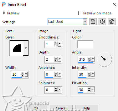 22. Effects>3D Effects>Inner Bevel, color #ffffff.