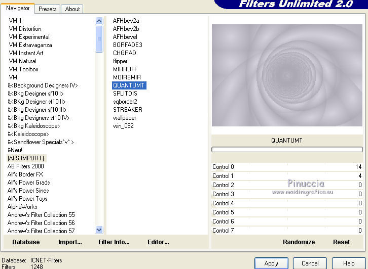 3. Effets>Modules Externes>Filters Unlimited 2.0 - AFS IMPORT - QUANTUMT, par défaut.