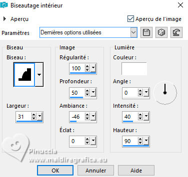 20. Effets>Effets 3D>Ciselage, couleur #ffffff.
