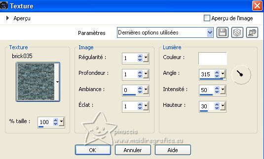 3. Effets>Effets de textures>Texture - sélectionner la texture Brick035