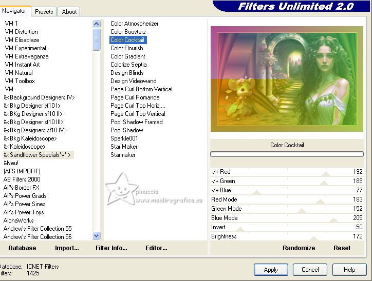 28. Effets>Modules Externes>Filters Unlimited 2.0 - Sandflower special "v" - Color Cocktail, par défaut.