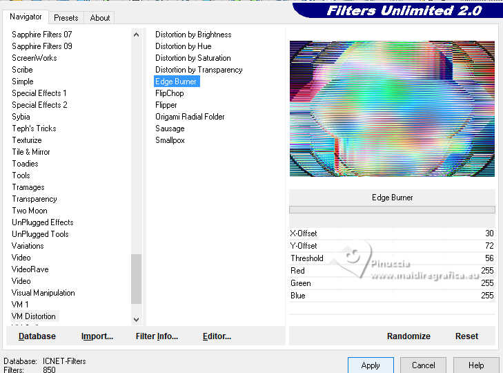 5. Effects>Plugins>Filters Unlimited 2.3 - VM Distortion - Edge Burner.