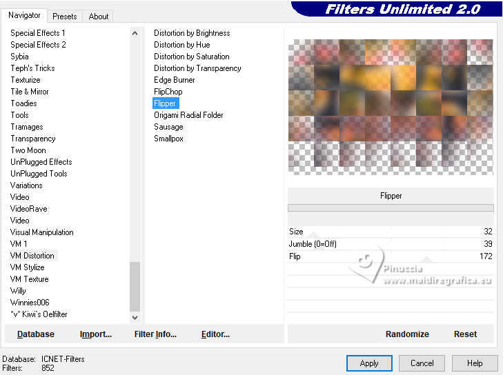 8. Effets>Modules Externes>Filters Unlimited 2.3 - VM Distortion - Flipper.