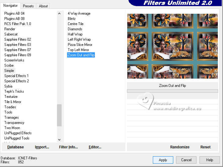 28. Effets>Modules Externes>Filters Unlimited 2.0 - Zoom out and Flip.