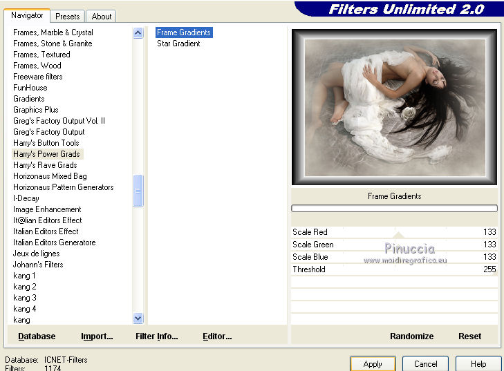6. Effets>Modules Externes>Filters Unlimited 2.0 - Harry's Power Grads - Frame Gradients, par défaut.