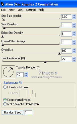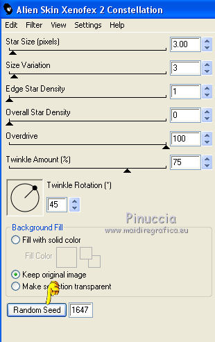 Répéter Effets>Modules Externes>Alien Skin Xenofex 2 - Constellation, cliquer sur Random Seed et ok.