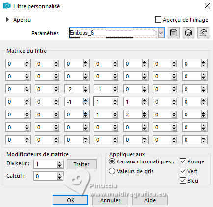 5. Effets>Filtre personnalisé - sélectionner le preset Emboss 6 et ok.