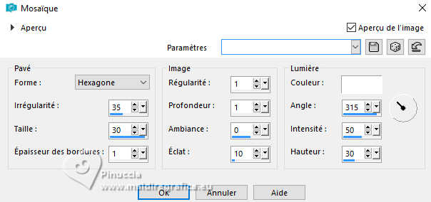 5. Effets>Effets de Textures>Mosaïque - couleur #ffffff.