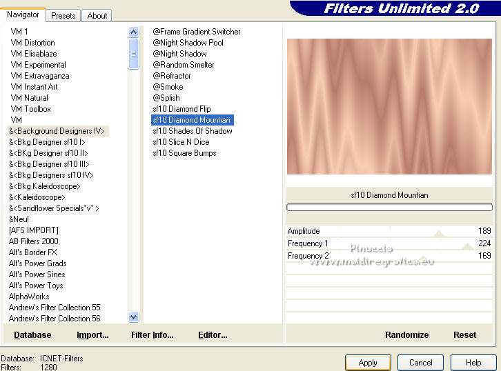3. Effects>Plugins>Filters Unlimited 2.0 - &<Background Designer IV> - sf10 Diamond Mountian