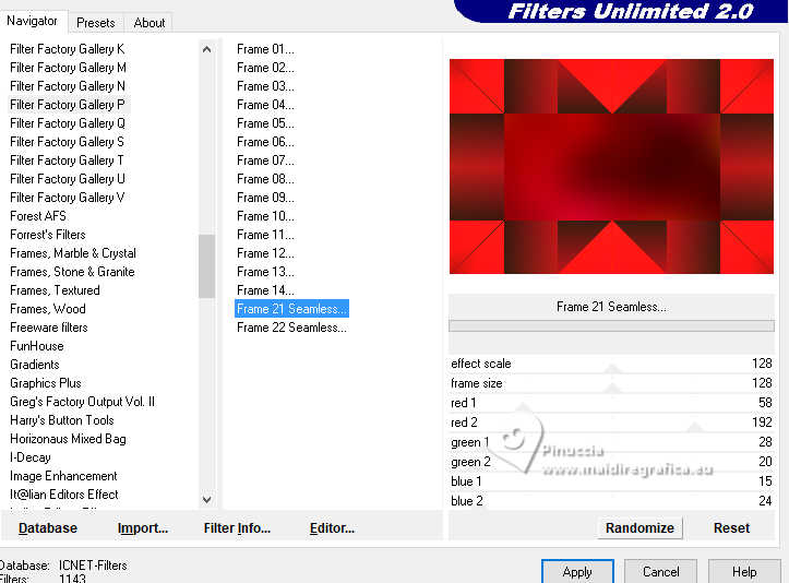 7. Effets>Modules Externes>Filters Unlimited 2.0 - Factory Gallery P - Frame 21 Seamless, par défaut.