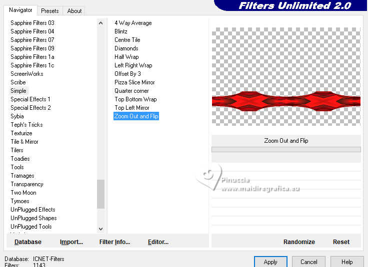 Effets>Modules Externes>Filters Unlimited 2.0 - Simple - Zoom Out and Flip.