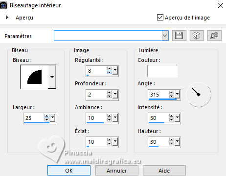 28. Effets>Effets 3D>Biseautage intérieur.