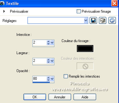 3. Effets>Effets de textures>Textile - couleur du tissage #000000.