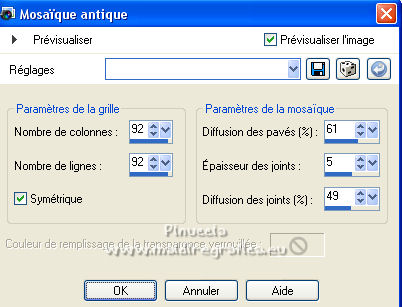 Effets>Effets d'image>Mosaïque sans jointures, par défaut.