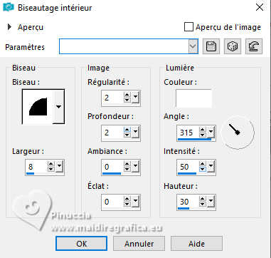 22. Effets>Effets 3D>Biseautage intérieur, couleur #ffffff.