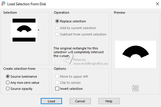 6. Selections>Load/Save Selection>Load Selection from Disk.