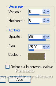 22. Effets>Effets 3D>Ombre portée, couleur d'avant plan #76694a.