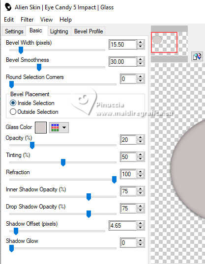4. Effets>Modules Externes>Alien Skin Eye Candy 5 Impact - Glass.