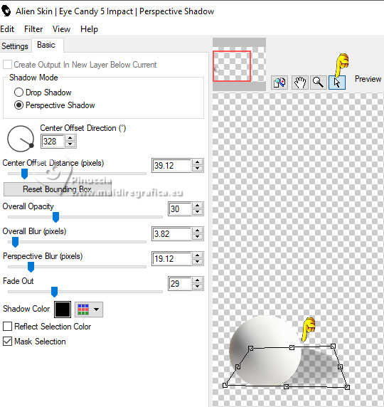 22. Effets>Modules Externes>Alien Skin Eye Candy 5 Impact - Perspective Shadow.