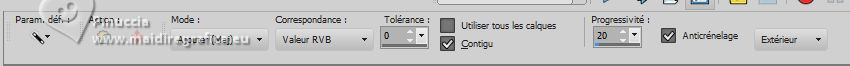 10. Activer l'outil Baguette magique . tolérance 0 et progressivité 20
