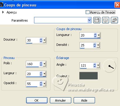 24. Effets>Effets de traits ou Effets Art Média>Coups de pinceau - couleur #4d5653.