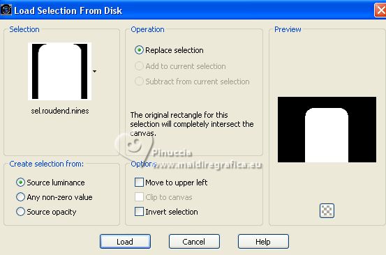 3. Selections>Load/Save Selection>Load Selection from Disk.