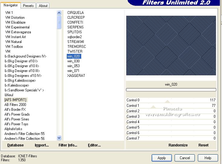 3. Effets>Modules Externes>Filters Unlimited 2.0 - AFS IMPORT - win_020, par défaut
